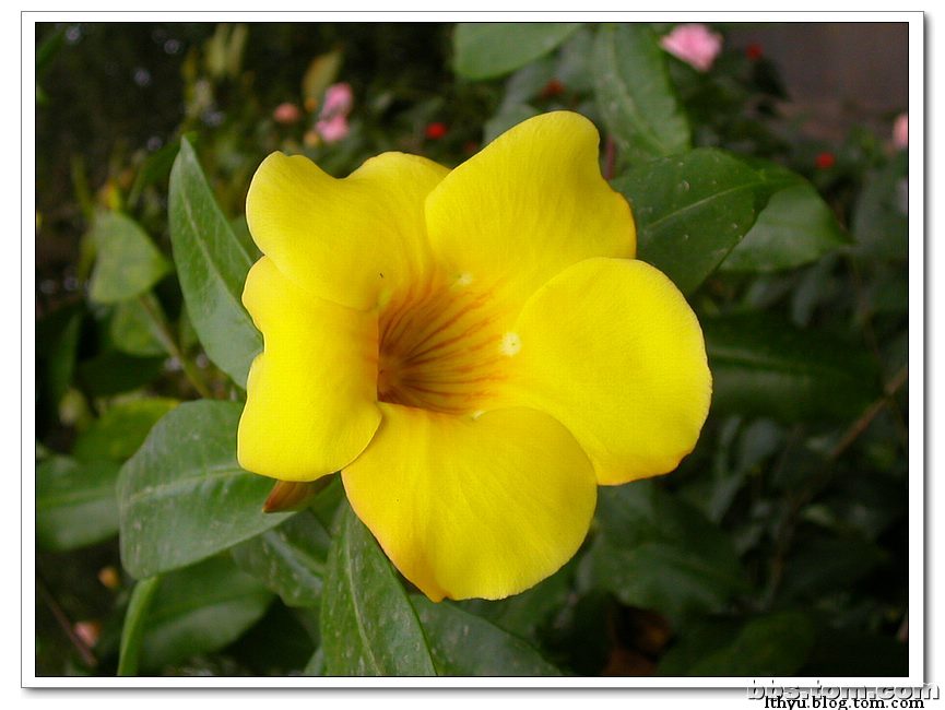 花聚傘狀花序,花色鮮?,中心有紅褐色條斑,花瓣五,合生為花冠筒,花冠基部不膨大,花蕊藏于冠喉中。果實圓形,密生銳利。花期為夏季。