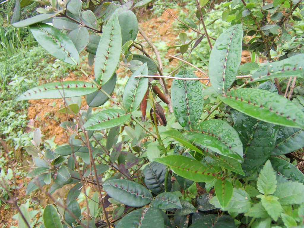 其莖干淺黑褐色,羽狀復葉單數對生,葉片暗綠色近革質卵狀長圓形。