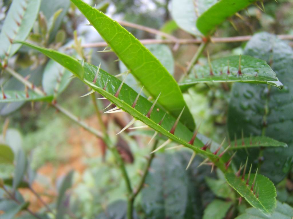 淡黃色小花具芳香,莖、枝、葉均有皮刺,種子黑色卵圓形。花期3至4月,果期9至10月。由于兩面針具有樹姿優美、四季常青,耐移植、易成活等優良的植物特性,近年來常被人們用來制作盆景或盆栽觀賞。