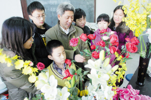天津農(nóng)學(xué)院園藝教授為社區(qū)學(xué)生傳授插花知識(shí)