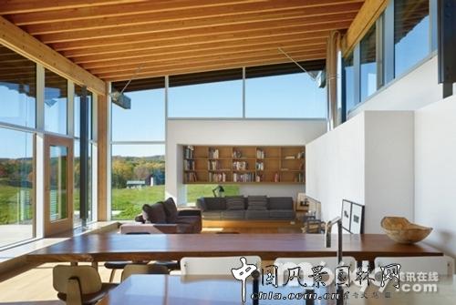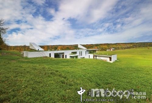 建筑師Ian MacDonald設(shè)計的草地住宅坐落在加拿大多倫多的北部,這是一座現(xiàn)代住宅,設(shè)計非常精致,和周圍環(huán)境融為一體。這座面積3000平方英尺建造在山上的凹處,如果不是綠色屋頂上的入光孔,一般人是很難察覺到這座住宅的存在。
