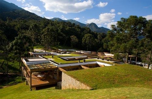 水面似鏡面一樣寧靜,構成了屋頂的一部分,這座由巴西建筑師事務所負責設計的別墅將概念設計演變成了現實。在屋頂有巨大的蓄水池,這些水渠最終都會納入這個蓄水池中。