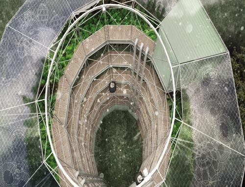 我們旨在創(chuàng)造一個(gè)環(huán)境友好型的小型城鎮(zhèn),環(huán)境是日常生活中至關(guān)重要的一個(gè)環(huán)節(jié).我們希望將螺旋花園設(shè)計(jì)成城市的綠色心臟,且維護(hù)起來(lái)非常簡(jiǎn)單,于是設(shè)計(jì)出來(lái)了這樣一座被網(wǎng)柵保護(hù)著的輕便的螺旋花園。這項(xiàng)工程提醒人們可持續(xù)發(fā)展的重要意義。花園里的植被全部是當(dāng)?shù)刂参铮踔吝€有橡樹(shù),一層層的花園旁設(shè)有走道,可當(dāng)作戶外散步道。人們可以對(duì)著這些大自然的鄰居敞開(kāi)心胸,徹底放松自己。在這里,人們能與自然和諧共存。