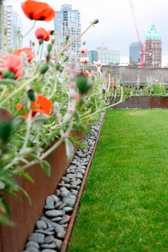 這座充滿田園氣息的屋頂花園位于加拿大溫哥華的Wingsang公司辦公大樓。設(shè)計(jì)者希望能將屋頂?shù)沫h(huán)境與周圍環(huán)境自然融合,并將其設(shè)定成一個(gè)令人放松的開放式空間。植物選用的是罌粟花,雛菊等晚春和早秋的花卉。