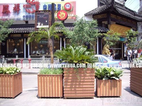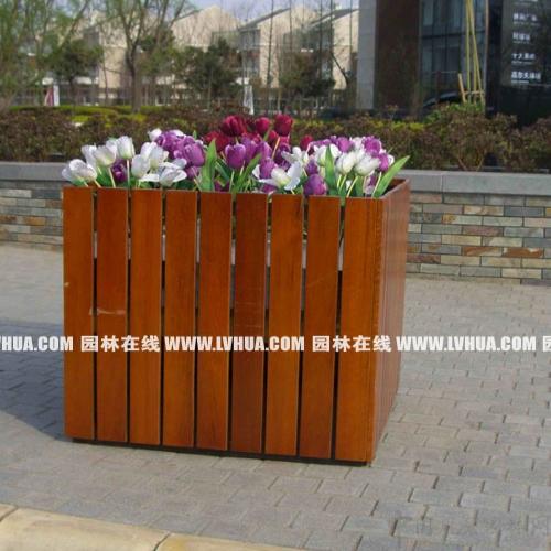 花箱采用(環保型塑木材料)使用時令鮮花或艷麗的木本花卉來增加色彩。幾組容器組合在一起的效果。