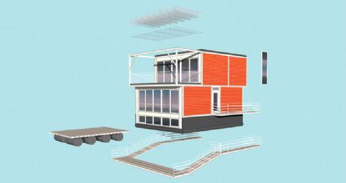 建筑立面選用了光滑且色彩鮮艷的鋁塑板,結構則使用了輕質鋼框架,居住著可以根據自己的細化最大限度的改變、設計自己的住宅,例如,業主們可以自行決窗戶的安裝位置。這些住宅建筑全部由浸入式的混凝土錨固定、支撐,居住者可根據需要在漂浮的住宅上加建——花房、漂浮的陽臺和涼棚——這些都可以簡易的加建在鋼框架上。