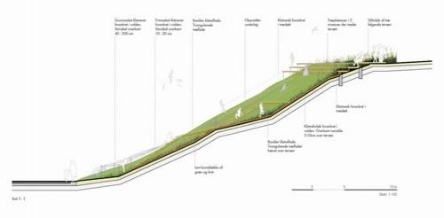 在丹麥,很難見到垂直地勢。但這個(gè)公園充分利用了“小山”的地勢景觀,提供游人一個(gè)活動(dòng)玩樂的場所,帶給當(dāng)?shù)鼐用褚幌盗行迈r的感覺。老年人漫步草坪,青年人爬一爬山坡,孩子們冬天時(shí)還能滑雪橇。