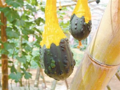 “這是將普通的種子帶入太空后,在太空特殊環境下使基因發生變異,經過農業專家幾年的地面培育、篩選后,最后才種植成功的。太空南瓜可以長到四五百斤,茄子可以長到四五斤。”該館負責人向記者介紹說。目前園內共引進瓜、葫蘆、辣椒、西紅柿、茄子五大類、36個品種太空植物。5月份,園內的太空植物就會結出更多五彩繽紛和形狀各異的碩果。
