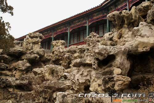 靜心齋中的假山石,講究“瘦、透、漏、皺”,其形態不可謂不怪,不可謂不丑。但正是這些“如虬如鳳,如鬼如獸,將翔將踴,若行若驟”的太湖石,經過園林藝術家、建筑家的巧妙安排、精心堆疊,卻變得“矗如峰巒,列如屏障”,使它們成為園林立體畫卷中充滿自然情調而倍受喜愛的審美對象。建筑藝術的“丑”表現為對其“美”的對比襯托作用。以典雅精巧的亭臺樓閣等園林建筑為背景的假山怪石,實際上也體現了粗與精、丑與美的對比映襯之趣。