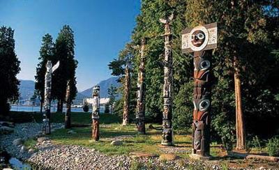 在斯坦利公園北端,是橫跨海灣的獅門大橋的一端。獅門大橋與舊金山的金門大橋并稱,橋身兩側以弧形鋼索懸吊,長約1660多米的大橋可容3條車道,是連接溫哥華市與西溫哥華和北溫哥華的交通要道。在公園東部,有幾根形狀不一的印第安木刻圖騰柱,它們不僅是印第安人文化藝術的體現,也為公園增添了一處歷史景觀。