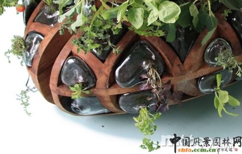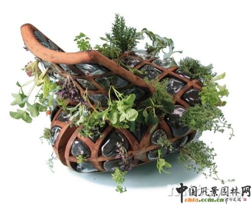 “座椅花園”是荷蘭設(shè)計師CarolinePrisse設(shè)計,正如設(shè)計品名字一樣,它既像椅子,又能種植植物。結(jié)實(shí)的木質(zhì)結(jié)構(gòu)上有很多“口袋”,“口袋”中又有很多塑料罐,罐中可以種植植物。