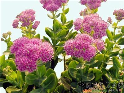 華麗景天為景天科景天屬多年生肉質植物,主要分布于我國的東北部及河北、河南、山東、安徽等省區。其肉質莖圓形,粗壯直立,株高一般在30厘米~50厘米;莖基部為褐色,稍木質化,上端淡綠色,稍被白粉;葉片肥厚肉質,對生或輪生,倒卵形,葉片邊緣稍有波狀鋸齒,葉色淡綠或灰綠,稍被白粉;聚傘花序頂生,花序直徑10厘米~15厘米,小花具萼片5枚,花色有白色、紅色、淡紅色、桃紅色、紫紅色等,花型密集、整齊;花期8月~10月,果期10月。
