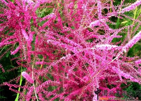 中國風景園林網訊  近日,上海辰山植物園旱生植物園內,一種美麗的荒漠植物,吸引了眾多游客駐足觀賞。它就是檉(讀chen)柳,為檉柳科檉柳屬落葉灌木或小喬木。該植物園內,目前展示的有‘四蕊’非洲檉柳、中國檉柳、‘粉紅瀑布’多枝紅柳、‘品紅’紅柳、淺色檉柳等多個品種。尤其是與雪白的沙石配置在一起,一叢叢檉柳淡煙疏樹、株型婆娑、別具風格;一條條花枝粉霧凝結、朦朧淡雅、柔媚迷人。不少游客聚集此地,在檉柳叢邊細細欣賞、稱奇不已。