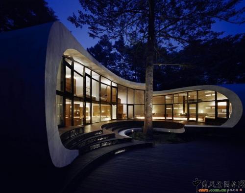 由建筑師kotaroide設計的“貝殼館”(ShellHouse),是一個建在輕井澤森林中的類似“殼”結構的建筑。項目坐落于日本長野縣。項目定位為一座度假別墅,同時要求具有抵擋當地夏季潮濕,冬季寒冷的功能。為實現這一目標,ide沒有選擇當地易腐而脆弱的傳統木結構,取而代之的是利用增強型混凝土去建造了兩個橢圓形截面的殼形結構。