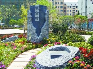 在鎖金南路和鎖金中路交匯處的市民小廣場,原本光禿禿的以石板方磚鋪就的平地,如今已經變成了一個花團錦簇的小游園。尤其讓附近居民眼前一亮的是,整治后這里還多了一個石碑,石碑內容正是“鎖金”的典故,石碑下簇擁很多品種的花草,增添幾份人文氣息。