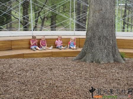 游樂園主要的特色是栽植了當?shù)貥淠竞推咸烟俚穆教偌堋KB接了6個室外游戲空間或者說是“巢”,同時也是這些“巢”的支架結構。從滑索和秋千到懸于樹上的網(wǎng),這些高坡和凹地提供了一系列豐富的游戲經(jīng)歷,極大的增加了孩子們的空間和感官體驗,整合了各個年齡段的孩子的需求特點和興趣點。在優(yōu)美的自然環(huán)境中,藤架和“巢”的組合提供了極富樂趣的捉迷藏場所。