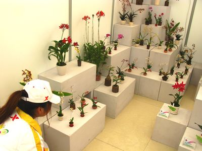 千姿蘭園此次參賽、參展的文心蘭“甜姐兒”、“小櫻桃”、“火鳥(niǎo)”、“舞春風(fēng)”;蝴蝶蘭“小桃子”、“清秀佳人”;卡特蘭“蘋果花”、“紅天嬌”;新品種“樂(lè)園”、“翠玉”等等超級(jí)迷你蘭花都令游客眼前一亮,贊不絕口,這些可愛(ài)清秀的迷你蘭花尤其受眾多女士的喜愛(ài)。其中卡特蘭“小哈蕾”還摘得本次蘭花國(guó)際競(jìng)賽的銅獎(jiǎng)。