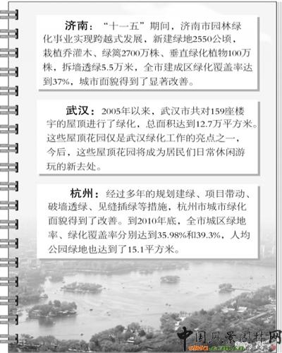 根據(jù)杭州市城區(qū)綠化工作意見,2011年全市城區(qū)將新增綠地500萬(wàn)平方米以上,屋頂綠化10萬(wàn)平方米,完成4000平方米以上的公園綠地建設(shè)20處,建成美化家園工程50個(gè)。通過(guò)實(shí)施“重點(diǎn)綠化工程”、“美化家園工程”、“屋頂綠化工程”、“運(yùn)河景觀提升工程”,進(jìn)一步提高城市綠化景觀效果,增強(qiáng)城區(qū)綠化生態(tài)功能。
