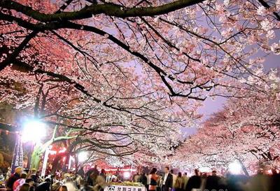 花開時(shí)節(jié)在夜間燈光下觀賞“夜櫻”