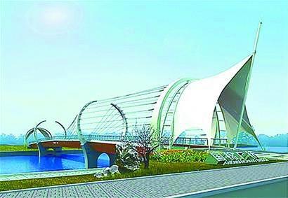國棉廠橋?yàn)槿诵袠颍饕孕蓍e、觀景為主。橋梁形似紡錘,裝飾材料以現(xiàn)代感的鋼結(jié)構(gòu)為主,在橋體兩端增加鋼結(jié)構(gòu)拉膜裝飾造型。橋體側(cè)面、下部做格柵處理,形成動感流暢的線條造型,突出表現(xiàn)該橋的時尚、現(xiàn)代、科技感。