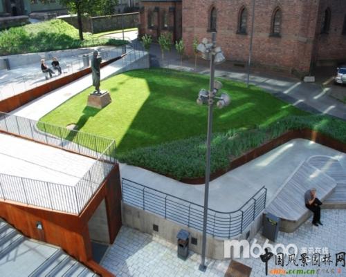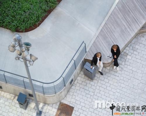 為廣場設(shè)計(jì)出的高達(dá)7米地斜坡是它和周圍的兩條街道區(qū)分開來,為了使不建造樓梯,就能達(dá)到上面創(chuàng)造了一種挑戰(zhàn)。因此,設(shè)計(jì)師建造了一條狹長彎曲的通道,從地勢較低的地方連接到地勢較高的地方。對于廣場來說,這條通道很重要,因此設(shè)計(jì)師們就用巧妙的設(shè)計(jì)來突出這個地區(qū)的特色。從低到高是體驗(yàn)綠色空間的一種很好的方式。