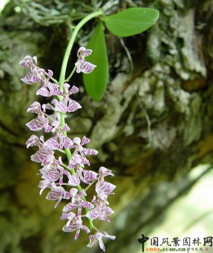 象鼻蘭(Nothodoritis zhejiangensis Z。 H。 Tsi)屬于蘭科中國(guó)特有的象鼻蘭屬,僅象鼻蘭一種,目前發(fā)現(xiàn)只分布于浙江臨安天目山和寧波、甘肅康縣和陜西鎮(zhèn)坪等地,生長(zhǎng)于海拔350—900米的山地林中或林緣樹枝上,觀賞價(jià)值高,也非常珍稀,已被列入中國(guó)物種紅色名錄,被定為瀕危物種(EN)。象鼻蘭的4個(gè)花粉團(tuán)彼此分開,萼片和花瓣白色,具紫色橫紋,唇瓣無(wú)爪,無(wú)萼囊,柱頭具附屬物,蕊喙細(xì)長(zhǎng),似象鼻,因而得該名。迄今為止,世界上還沒有象鼻蘭人工繁殖和栽培的報(bào)道。