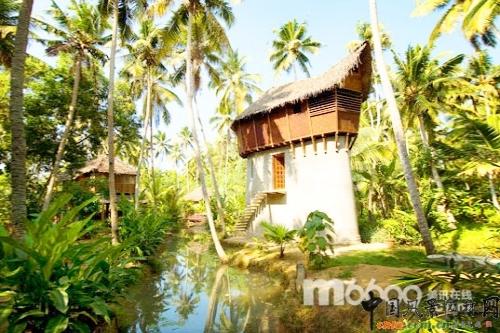 這座住宅是由Mark和SujeewaReynolds這對英國夫婦一起設計的,星期五小舍是由4個安靜的柚木別墅建在海嘯住宅之上而形成。海嘯住宅是他們的蜜月套房。這座小舍的設計特點使每個住處周圍都有對應的河道,在保護隱私的同時,也盡可能少的對周圍的環境造成干擾。