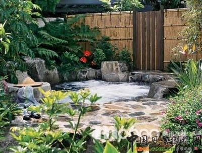 在這個小花園里,地被部分使用了錦天以及部分草坪,門口和邊界的黃花萱草,給整個庭院增加了亮麗的氣氛?;▓@中錦鯉池是一處焦點景觀,周圍種植了槭樹和杜鵑,水中則種植水竹(旱傘草)、浮萍等,除此,水葫蘆、千屈菜、茨菰、荷等也是不錯的水生植物。而在湯池旁邊,主人則種植了變葉鴨爪木、七葉樹以及部分闊葉溫帶植物,為湯池營造出溫暖的視覺效果。無論什么植物,都應本著“取其自然,順其自然”的原則。