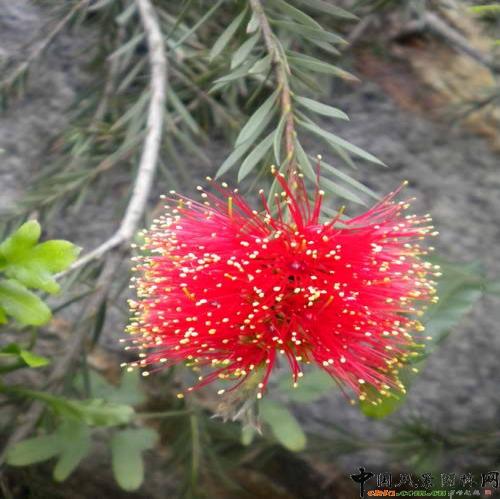 巖石園是一種西方園林,用于種植、展示生長在崖壁、巖縫、巖層間隙的野生植物,有別于中國的假山。巖石園中一塊小的區域常能生長許多種植物,在有限的空間能集中豐富的植物種類,如匍匐植物、地被植物、各種草花、小灌木、藤本植物等。澳洲植物專類園的巖石園地勢呈高低起伏,道路用石塊鋪設,建造時按各種巖生植物的生態環境要求,選取具有代表性的山石,模擬澳洲島嶼山地的裸露巖層景觀,所用巖石未經人工雕鑿,有立有臥,有丘壑,疏密相間,石與石之間留有縫隙與間隔,用以填入各種巖生植物生長所需的土壤。在大巖石旁種有產自澳洲的方葉五月茶(Antidesmaghaesembilla)、澳洲蒲桃(Syzygiumaustrale)等矮生喬木、巖石間種植有高崗松(Baeckeavirgata)、巖生紅千層(Callistemonpearsonii)、澳洲米花(Ozothamnusdiosmifolius)、石南桃金娘(Babingtoniatozerensis)、年青蒲桃(Xanthostemonyoungii)等小灌木,石縫隙中長有攀援、纏繞的草質藤本植物,地面上的草坪形成自然植被,頗具山區野趣,充滿曠野的冷峻、荒涼氣息,體現出一種自然、原始、真實之美。