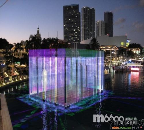 水立方的建造使用的是傳統的鋼鐵結構,同時也是用了非傳統的水幕進行外部打造。偶爾,水盒子不作舞臺使用時,這座水雕塑會成為邁阿密的標志性建筑。當能量不足時,底部的太陽能電池板可以代替發電,下面的水泵可以使用循環能量,使這個水盒子成為一項持續性的雕塑設計。