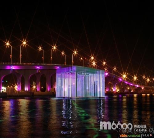 水盒子景觀周圍流動的舞臺為這個景觀設計增添了一份更加迷人的色彩。這個立方體的空間建筑旨在喚起人們要在長期以來在海灣建立人工島和水上通道的構思。水立方是由天然材料設計而成,代表了人工設計的最初起源。利用水路和大壩,瀑布為舞臺提供了窗簾、背景、私人屏幕甚至是建筑的表面。優良的水質可以吸收和掩蓋周圍的噪音,同時由水反射和折射出來的景象更是別具風景。