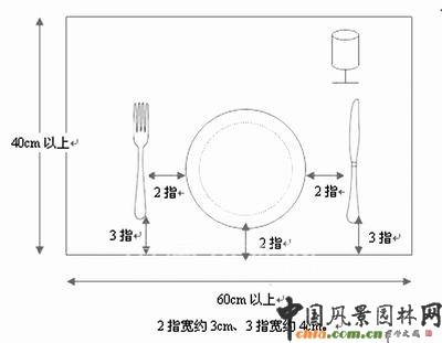 在常規的餐桌花設計中,每個人的用餐空間最少在60cm以上,這樣才不會碰撞旁邊的人。布置按照“臺布→器皿→餐具(刀、叉、勺)→酒具→餐巾→飾品”的順序。餐巾一般放在器皿的上面、叉子的左方。