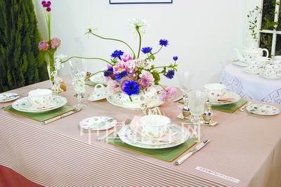 要想讓餐桌高雅溫馨,道具除了花、桌布、餐巾和餐具外,裝飾品也是必不可少的,如鹽罐、胡椒瓶、餐巾環、蠟燭、燭臺、陶瓷娃娃等。隨意擺放一些瓷器藝術品和水晶、絲帶飾品,會讓餐桌變得更富情趣。蠟燭的光線也可營造浪漫的氛圍。