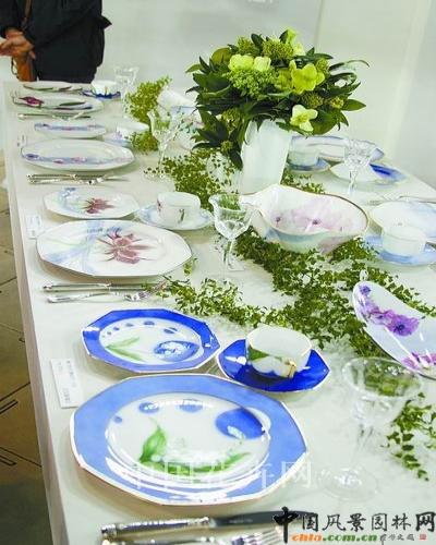 日本餐桌花花藝大賽作品:餐具豐富多變,用綠色葉材串聯起來,整體上給人華麗又清新的感覺。
