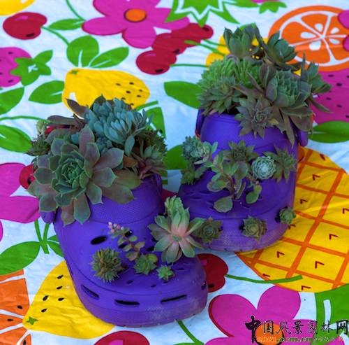 這就再簡單不過了。Crocs的鞋有很大的內(nèi)置排水孔,簡直就是天然的盆栽容器——植物們似乎非常喜歡它們。只需要把盆栽土壤塞滿鞋子就行。
