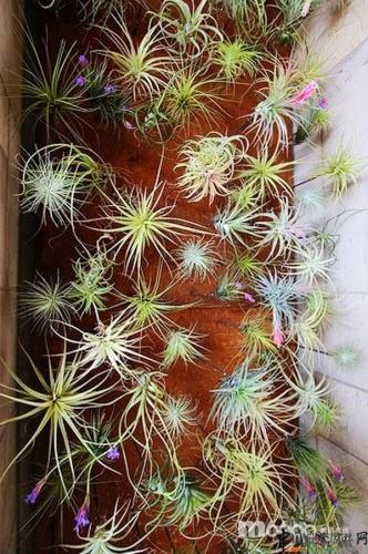 這個垂直的植物墻只含有各種各樣的氣生植物鐵蘭。這些植物很適于做垂直的花園因為它們不需要土壤就能自然生長。