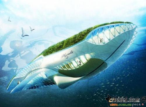 文森特卡勒博在完成了夢幻般的“睡蓮”(Lilypad)和“蜻蜓”(Dragonfly)項目之后,創作了一個鯨魚形漂浮花園(“僧帽” Physalia),旨在漂流于世界各地的河流之上,從而凈化河水。僧帽是一個自給自足的生態系統,借助自身的“光合作用”獲得所需的能源,并通過生物過 濾減少水污染。
