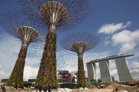 6月29日,新加坡建設“超級樹”國家花園的工作如火如荼地進行,目前的重點建設區域在濱海灣的金沙酒店附近。這些所謂的“超級樹”其實是垂直花園,配備了與環境相容的自我生存設施,高度從25-50米不等。“超級樹”上種植的主要是熱帶有花攀援植物、蕨類和附生植物。“超級樹”項目是新加坡政府將國家花園建設在這個城市國家中心計劃的一個組成部分。