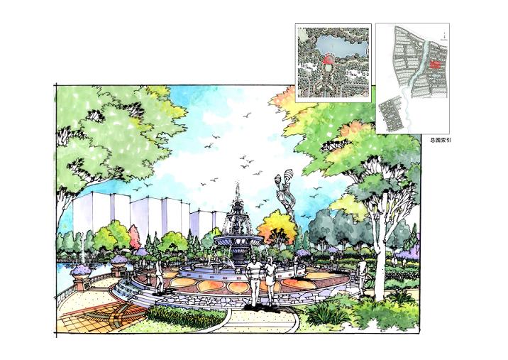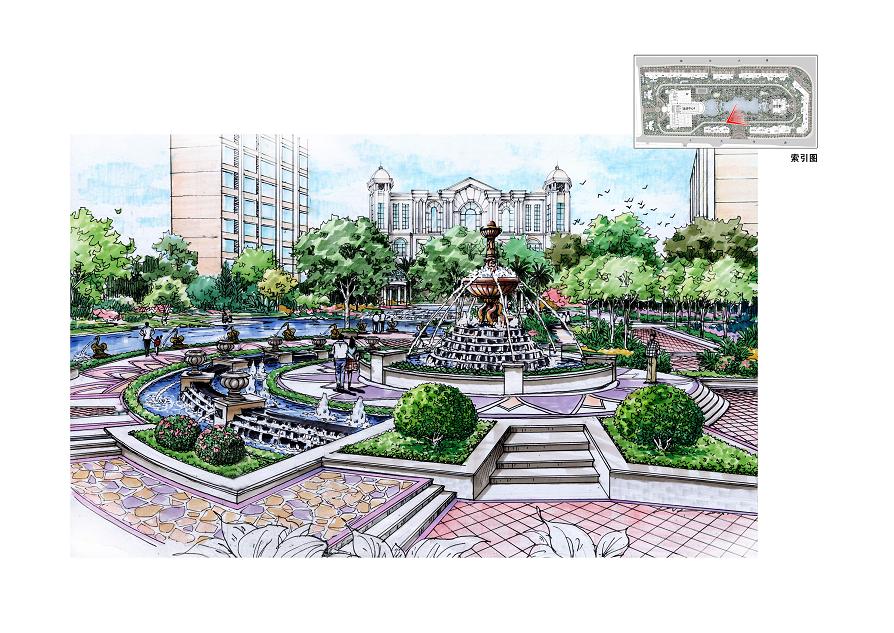 山東萊蕪金碧天下項目整體以新古典主義風格為主,建筑上是以新古典精神進行設計,將古典和現代建筑的精華相融合,延承經典的建筑比例和精致的細節,與現代建筑簡潔的線條有機結合,景觀設計與建筑風格相呼應,通過雕塑小品、景觀廊架、特色水景等及植物的合理搭配,營造出宜人的景觀空間,為現代都市生活注入一個新的理念。中心湖區位于景觀主軸上,以豐富多樣的水景,如疊級水景、噴水雕塑、寬闊湖面等組織形式串聯各個組團,形成統一的景觀序列。圍繞水體營造各種景觀,如濱水廊架、觀景平臺等,凝聚成精彩的景觀空間。組團空間以體量均衡、柔和親切的景觀效果為側重,營造舒適淡雅的居住空間感受。