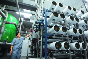 在國家體育場“鳥巢”的雨水處理車間,工人檢查納濾系統的工作狀態。據介紹,被回收的雨水在這里經過砂濾、超濾、納濾三套系統的過濾后成為高質量中水并被再利用。北京日報記者 饒強攝