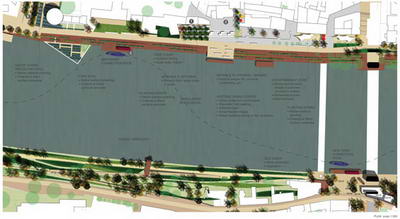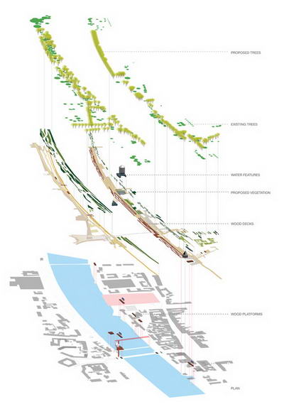 中國風景園林網(wǎng)訊:斯洛文尼亞,馬里博爾Drava河濱重建工程為提升城市生活和空間使用效率提供了一系列可能。這并不是大而空的工程,這里依然開放,能經(jīng)常慷慨的帶給你驚喜。改建后,在這里,居民可以帶著孩童,沿著河流悠閑的散步,或者來此釣魚。Lent廣場上綠樹成蔭,駐足在樹下欣賞晚間的一場表演,后面的水塔便成為舞臺的背景。漫步于左岸的高樹下,觀賞著城市中射出的燈光。在主橋下面有渡船,乘一次船,在木質(zhì)甲板上放松,盡享河流景色。