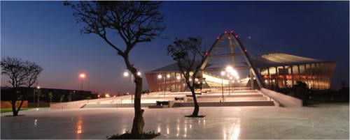 “其他的重要空間包括Imbizo—一個多功能前場,這里有巨大的榕樹,形成隱蔽的生長環境。作為對應,摩西馬比哈達廣場也有一個相當富有生氣的前場,有高大的樓梯和瀑布水景。”