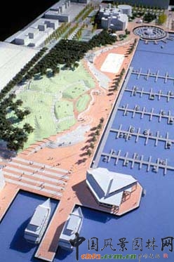 為了實現這些目標,已經建設了一系列的空間,這些空間具有具體意義和普遍意義。這些空間包括了螃蟹步道,頂著發光藍螃蟹的不銹鋼柱組成的入口區,每根柱子都可以捕風,并發出特定的樂聲。在擬建的游客中心附近將包括一個信息/野餐公園,這是一個交互式的信息廣場,被設計來傳達巴爾的摩和整個馬里蘭州的信息給游客和居民。自然歷史螺旋位于內港的中心地帶,以宏大的的姿把巴爾的摩的所有基本的要素——土地,水,和人聯接在了一起。