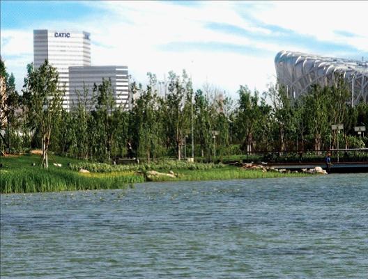 該項目景觀由多家設計單位的優秀設計師共同完成, 由我司承接建造工程。該項景觀工程是北京奧運中心區龍形水系最主要的組成部分, 體現生態環保、親切宜人,完工后已成為奧運中心區自然風景畫卷中最亮麗的一段。