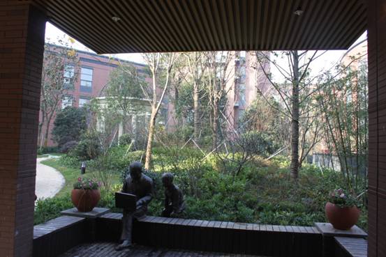 情景小雕塑與休息亭結合在一起,使場景變得更加怡人,更加富有生活色彩,自然起坡的綠地,配以豐富的植物景觀,將休息亭與建筑完美地隔離開來,給住戶營造出一個舒適、愜意的戶外交流、活動空間。