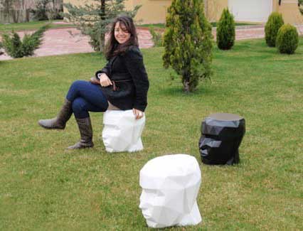 最牛的園林椅-人頭園林椅,看那個女孩正坐在人頭上看書呢!不過,要是晚上被不知道的人見到的話,可能會被嚇壞哦!