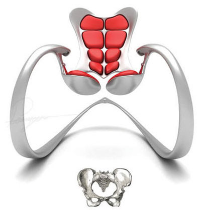 下面這款椅子是根據(jù)人的脊椎、臀部等符合人體骨骼結(jié)構(gòu)的設(shè)計,實際上它看上去就好像一副人體骨骼,紅色的靠墊像一塊塊肌肉。