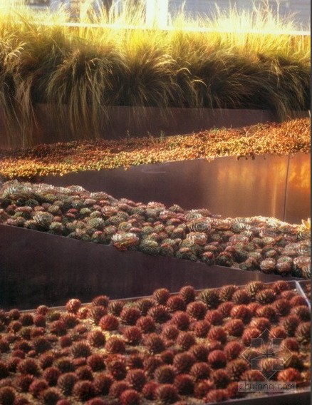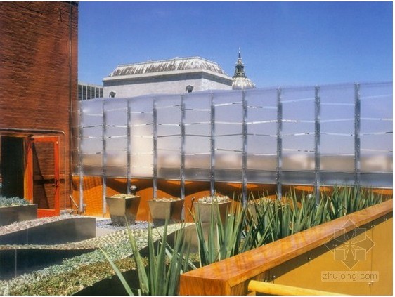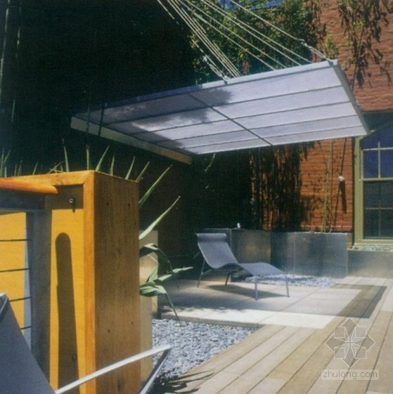 這個(gè)現(xiàn)代屋頂花園設(shè)計(jì)得相當(dāng)出色,軟質(zhì)景觀協(xié)調(diào)著周邊環(huán)境,是室內(nèi)空間的延展。從室內(nèi)設(shè)計(jì)的材料獲得靈感,設(shè)計(jì)師們?cè)O(shè)計(jì)了一個(gè)半透明的遮篷和懸臂遮篷,用以抵抗風(fēng)吹日曬。輕巧的花壇里種植著耐旱植物。