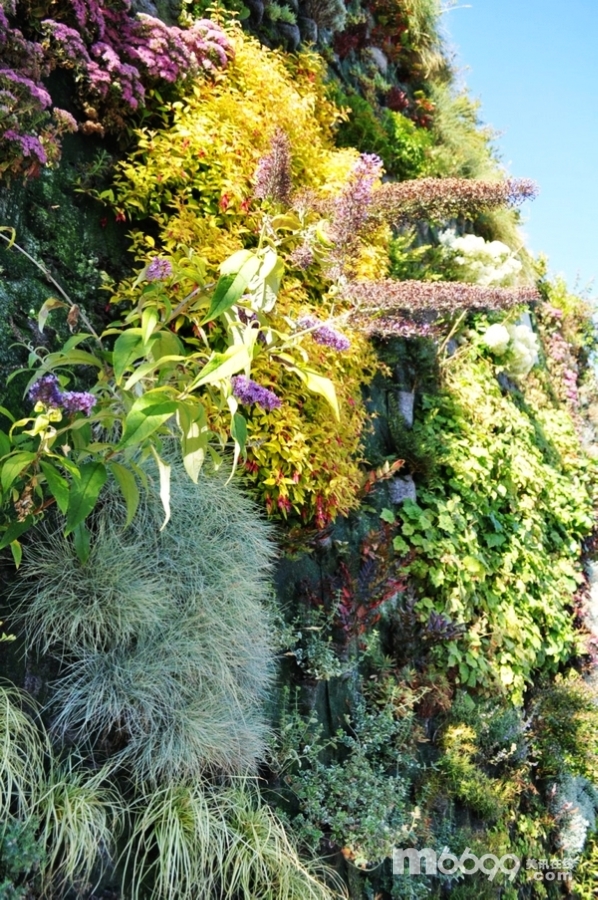 “所選擇的植物種類(lèi)多種多樣,創(chuàng)造了一個(gè)平衡的生態(tài)系統(tǒng),成為蜜蜂、蝴蝶以及蜂鳥(niǎo)的城市棲息地”,Green over Grey 負(fù)責(zé)人Patrick Poiraud說(shuō)到,“生命墻有助于使建筑物與周?chē)綦x,清新空氣并且將灰色的混凝土轉(zhuǎn)變成成千上萬(wàn)片的綠蔭。”