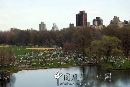 奧姆斯特德第一次到英國利物浦附近參觀了伯肯海德公園,他很欣賞那里的曲線道路,不規則的草坪、樹群、湖沼等。后來這些內容都用在中央公園的設計中了。當時英國流行的田園主義對美國具有深刻的影響,而且繼續產生影響直到今日。起伏的地勢,大片的草地、樹叢與孤立木,在此基礎之上,加上池塘、小溪和一些人工創造的水景,如瀑布、噴泉、小橋等,形成一種以開朗為基調的多變景觀。在處理地形時,巧妙地保留了相當一部分裸露巖石,使它們非常得體地成為自然園景的一個重要組成部分。
